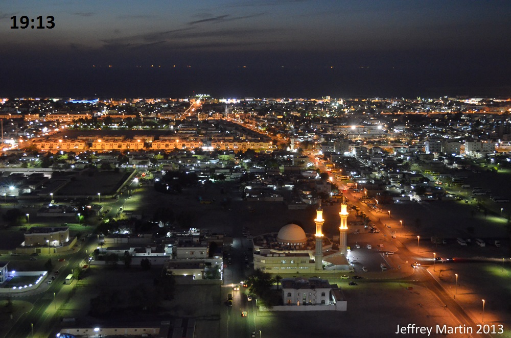 Indeed, I did. I got up just after 05:00, made a pot of coffee, and carried my gear up to the roof. I live in a 31 story building on Sheikh Zayed Road, the main thoroughfare through Dubai, the one you see in the marketing and promotional materials, the one with the long row of skyscrapers. At 31 stories, though, our building is rather dwarfish.